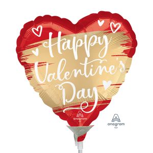 24. 22cm (9”) Hrt Happy Valentine's Day Satin Gold Swoosh - Red/Gold