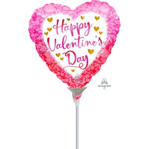 15. 22cm (9”) Hrt Happy Valentine's Day Watercolour Damask - Pink/Multi