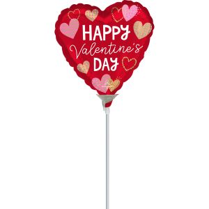 13. 22cm (9”) Hrt Happy Valentine's Day Blush Lined Hearts - Red/White