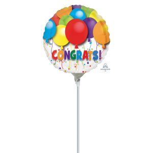 18. 22cm (9”) Rnd Bold Congrats Balloons - White/Multi
