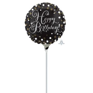 15. 22cm (9”) Rnd Sparkling Birthday - Black/Multi