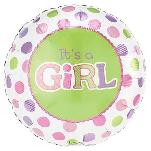 14. 22cm (9”) Rnd It’s A Girl Dots - Lime/Light Pink