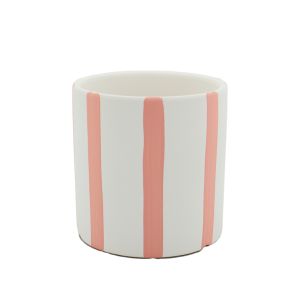 24. Ceramic Floral Stripe Pot 11Diax11Hcm - White/Peachy