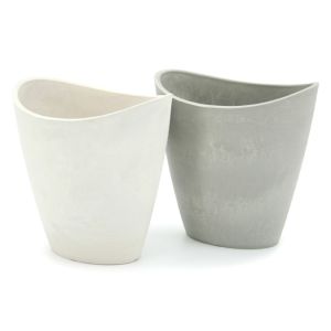 These gorgeous pots are made from a mix of wood, clay, polypropylene and UV resistant agent. They are very sturdy and much lighter than ceramics.